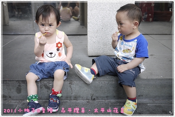 結果阿喆就把小桃子手上的餅乾剛好折掉一半很快的往自己嘴巴裡送