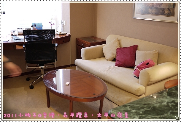 剛好是飯店的園區,還看的到遠方的香港市區跟海