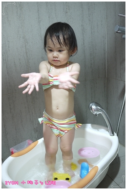 本來打算把浴盆拿到陽台讓小桃子在太陽下玩水