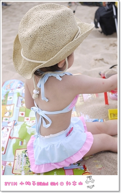 這套比基尼把小桃子的皮膚稱的更白晰囉~