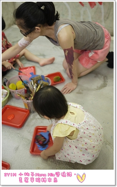 小桃子一開始沒辦法接受手沾到顏料